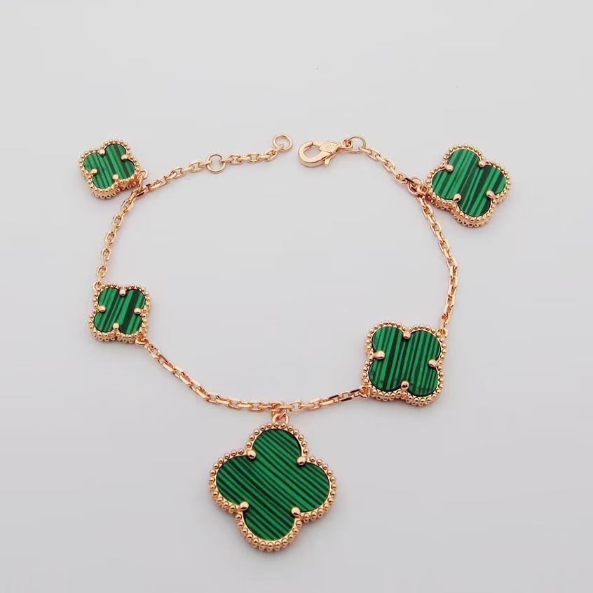 18K Magic Alhambra Five Malachite Motifs Clover Bracelet
