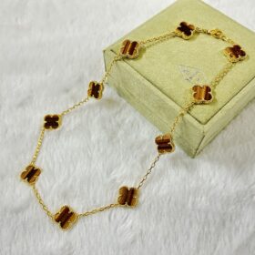 18K Vintage Alhambra Tiger Eye 10 Motifs Necklace