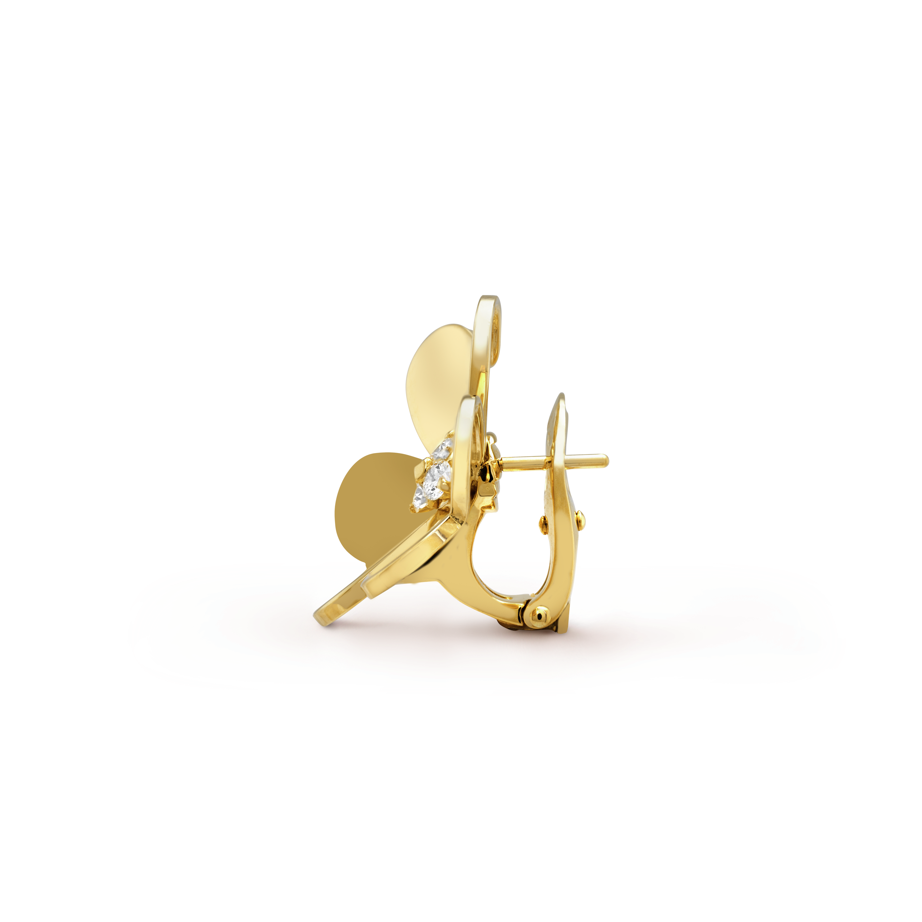 - Clip back with detachable stem in 18K Yellow/Rose/White Gold & Diamonds