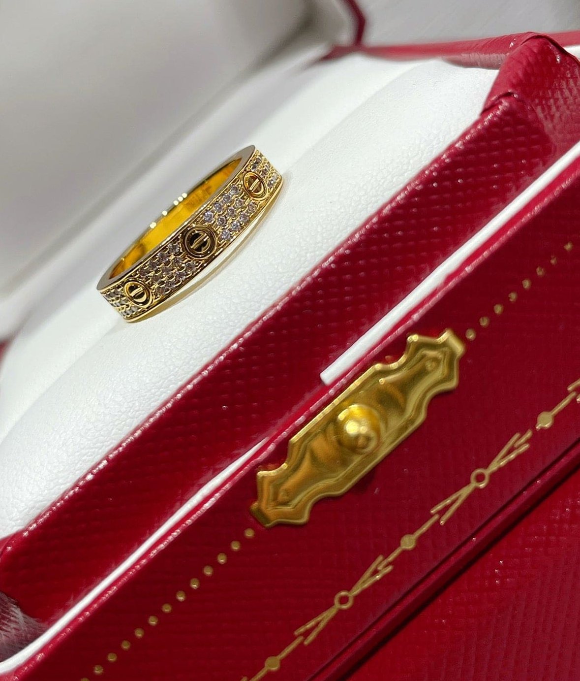This Love-inspired ring is a bold expression of modern elegance. Featuring signature screw motifs, it’s made from 925 sterling silver, layered in tarnish-free 18K gold, and designed for comfortable, all-day wear.