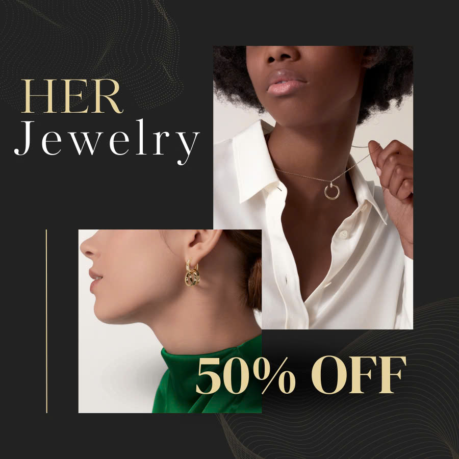 Discover HER Jewelry's renowned quality and care. Enjoy our exclusive 50% discount as we enhance your beauty with our exquisite designs. Trust in HER Jewelry for an unforgettable journey to timeless elegance
