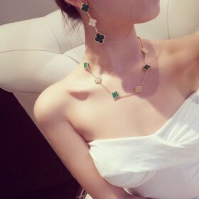 18K Vintage Alhambra Malachite Diamonds 10 Motifs Necklace
