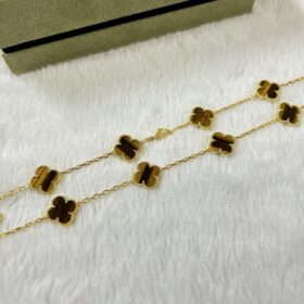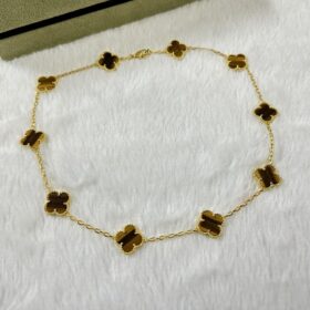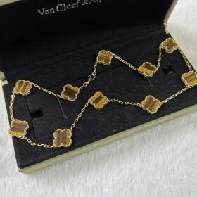18K Vintage Alhambra Tiger Eye 10 Motifs Necklace